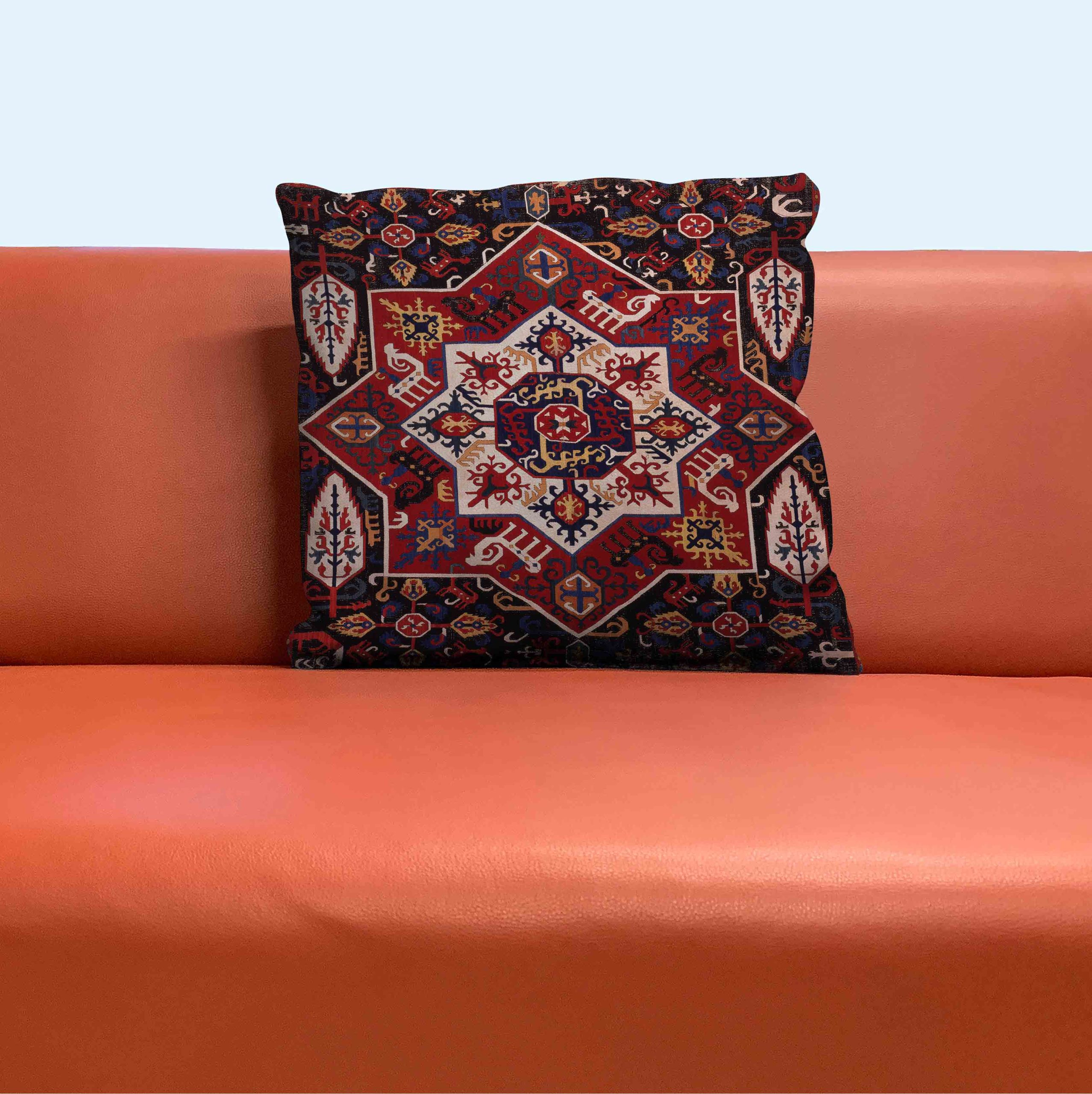 کاور کوسن طرح فرش قاجاری سرخ