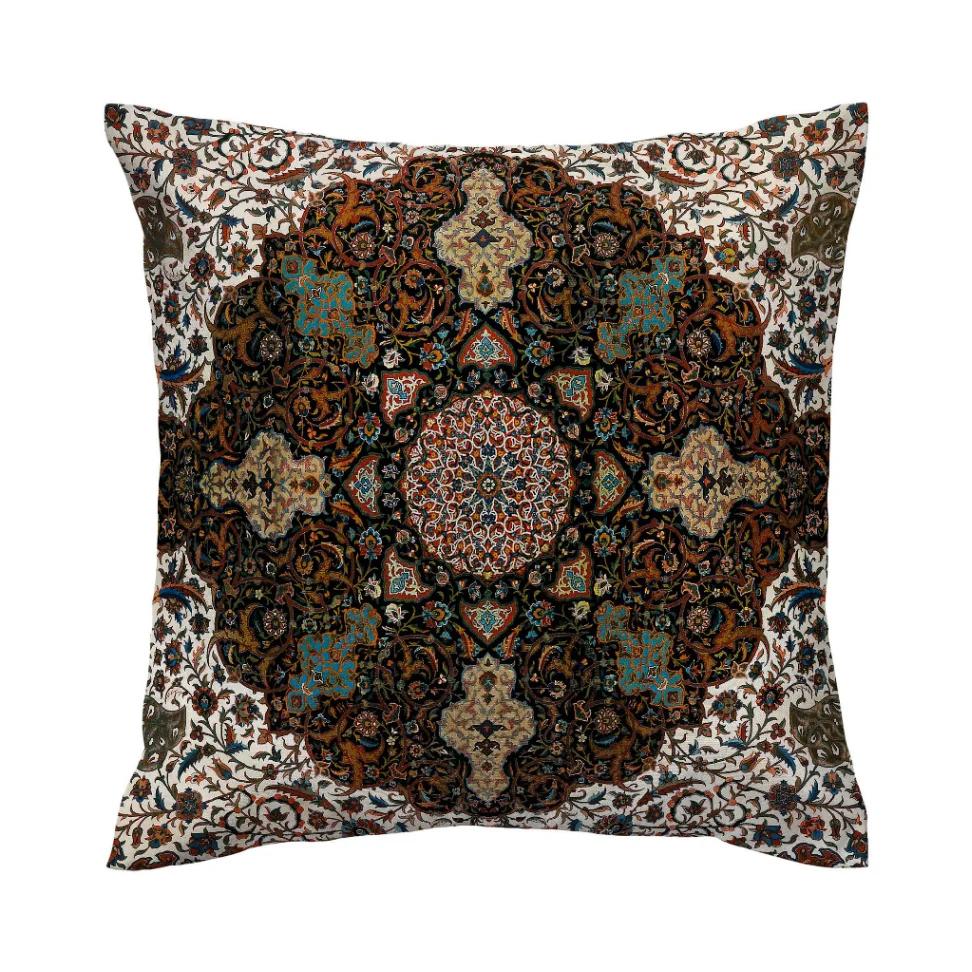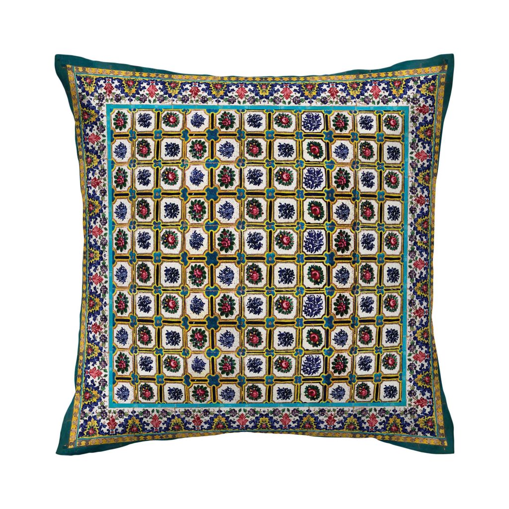 کاور کوسن طرح فرش قاجاری فیروزهای قهوهای
